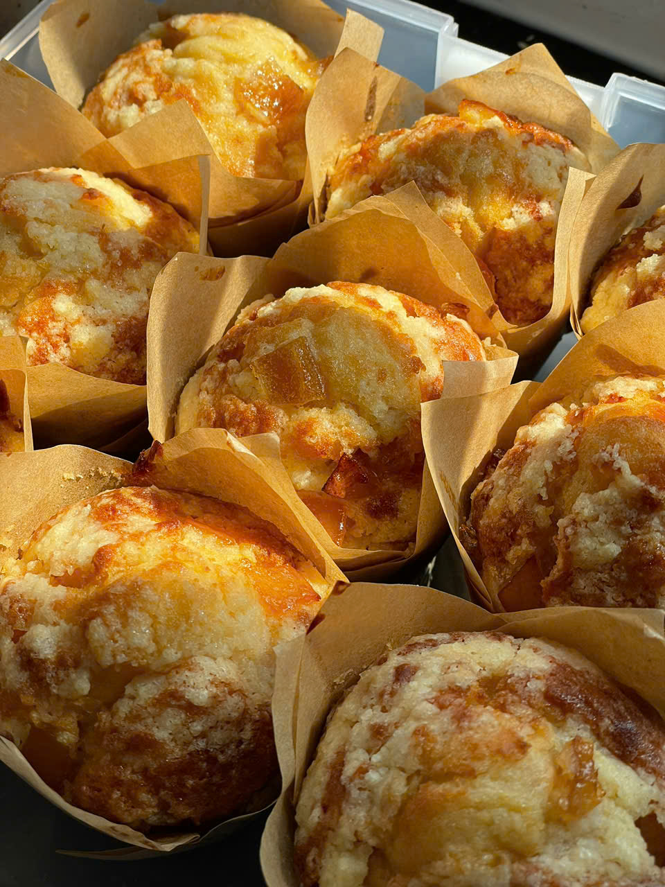 Aube’s Muffins come in three signature flavors: chocolate, lemon, and apple cinnamon — uncommon choices that define the bakery’s character. Made with fresh apples and house-made lemon marmalade, each muffin has a balanced sweetness, a moist crumb, and a lightly crisp top from its golden crumble.
